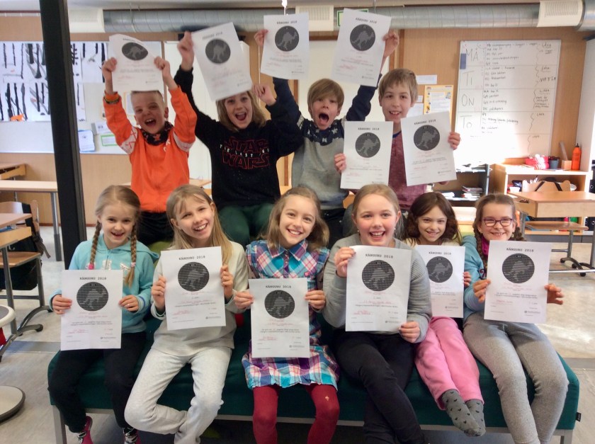Årskurs 3 har deltagit i världens största internationella matematiktävling. År 2017 deltog ca. 6,1 miljoner skolelever från 67 länder. Det finns två olika sätt att vinna i tävlingen. Det första är att få så höga poäng som möjligt och det andra är att göra ett så långt känguruskutt som möjligt, alltså svara rätt på så många frågor som möjligt i rad. Båda klassernas medeltal är högre än det nationella. Vi lärare är väldigt stolta över våra mattesnillen! De bästa eleverna i båda klasserna belönades med diplom och applåder.