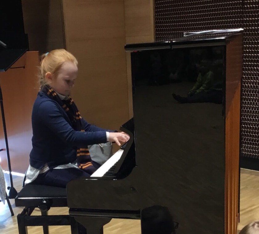 Cecilia Heinonen spelade The Happy Farmer på piano. Sedan sjöng vi ”Om man läser en bok” tillsammans.