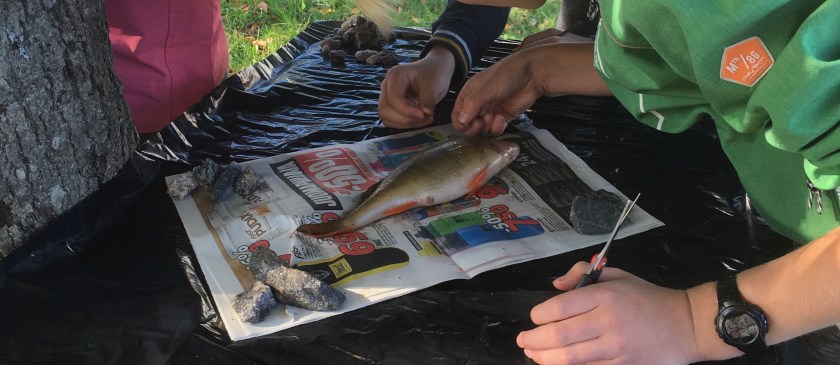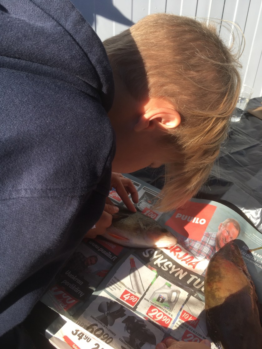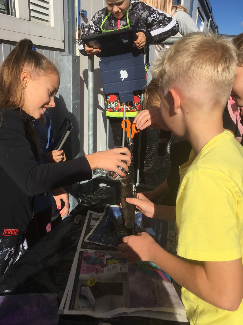 Några elever i åk 4 hade tidigare under veckan varit ut på fisketur och idag var det dags att se hur fiskarna såg ut invändigt.