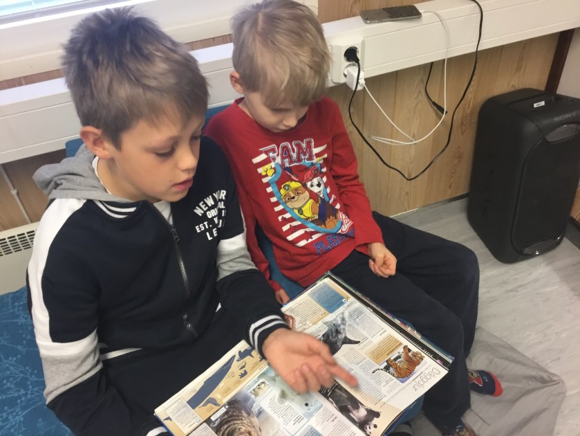 Åk 1 och 5 har haft som mål att eleverna ska lära känna varandra, skapa gemenskap och samhörighet, främja läsintresset, jobba med en mångsidig språk- och textmiljö, pröva på något nytt och att röra på sig. Eleverna har varit i blandade grupper med sina vänelever och de har pysslat, läst för varandra, spelat brädspel, haft skattjakt, lekt ute och rört på sig i Vapari. Tack till K-Katarina och Fennia för priserna till skattjakten!