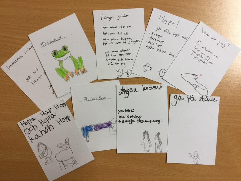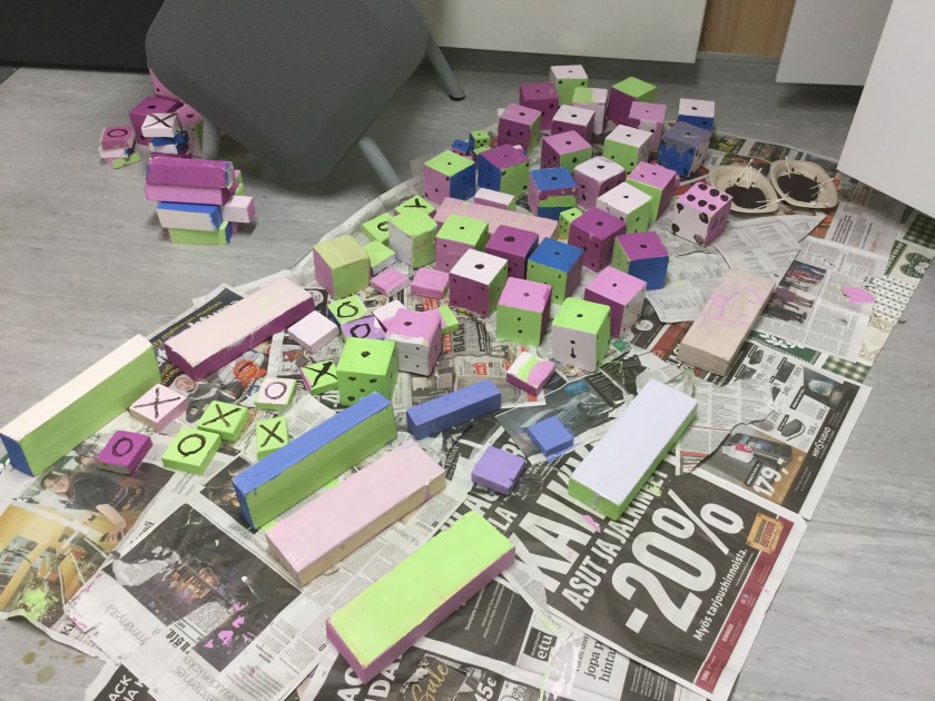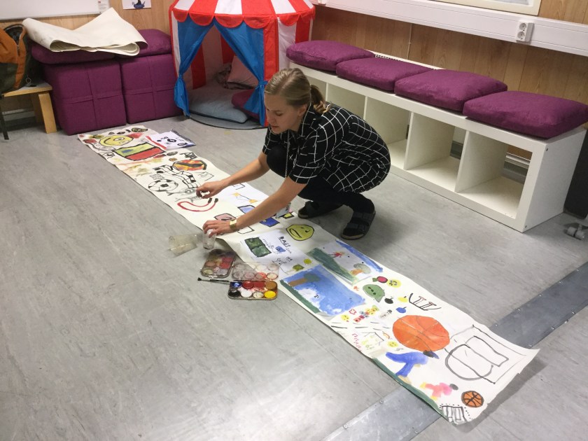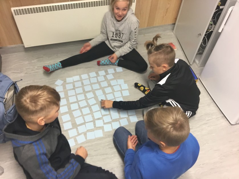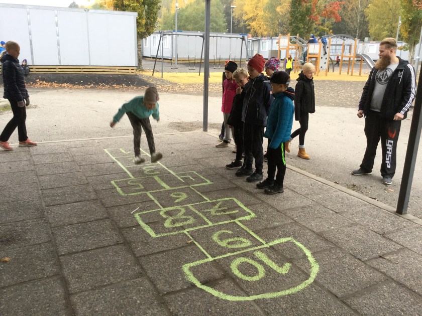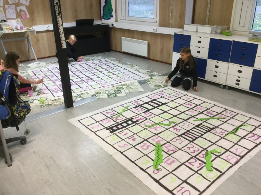 Årskurs 3 och 6 har arbetat tillsammans denna vecka kring huvudtemat Skola i rörelse. Tanken bakom temat har varit att eleverna ska få hela skolan att bli mer aktiva och röra på sig mer såväl under lektioner som raster. Vi har under dagarna bland annat målat spelplaner, inspirationsbanderoller, hundrarutor, tärningar och andra klossar samt tillverkat QR-koder. Eleverna har tillverkat leksaker och pedagogiska hjälpmedel som uppmuntrar till rörelse. I och med att eleverna själva varit med och tillverkat sakerna så kanske de också tar väl hand om dem. Målen för detta tema område har bland annat varit samarbete, skaparglädje, ökad trivsel, motoriska färdigheter och lära känna varandra över årskurser.