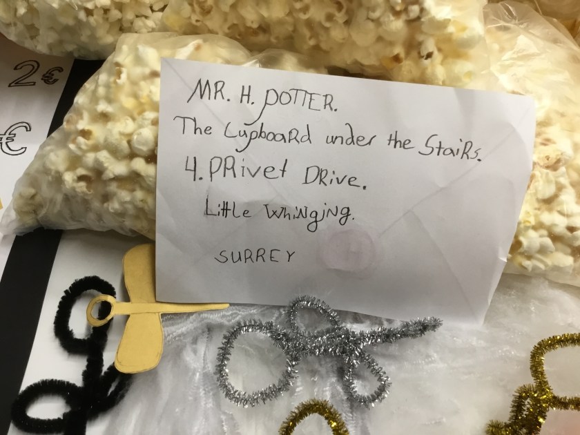 Femmorna sålde Harry Potter godis och läsk och gjorde roliga ballonger.