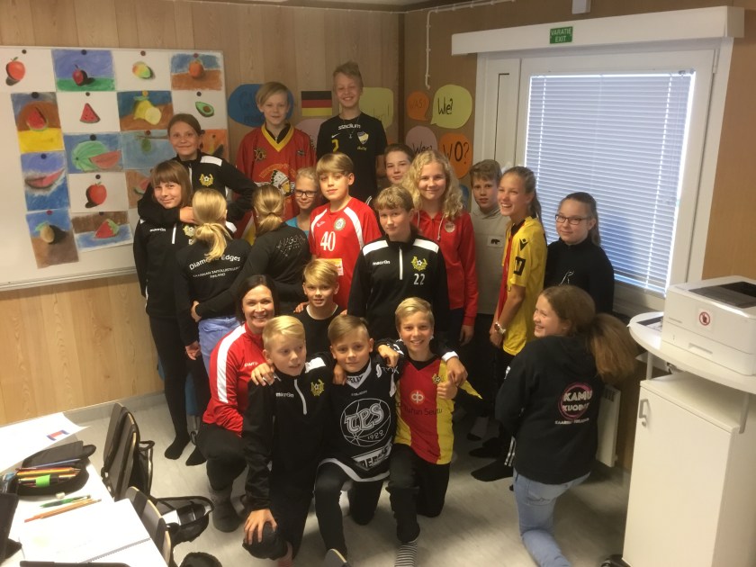 Igår uppmärksammade vi med de äldre klasserna ”föreningarnas skjortdag” (seurapaitapäivä). Alla visade stolt upp sina färger, olika hobbier var representerade!
