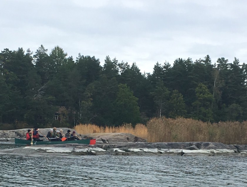 Vår första programpunkt på onsdagen var att paddla. Vi gick till stranden där det fanns dubbelkanoter. När vi lagt ut från stranden så började vi tävla, det var pojkar mot flickor. Våra grupper: Granarnas och Tallarnas pojkar paddlade på grund. När pojkarna hade fått sig loss så började vi paddla mot en båthamn. Där såg Tallarna en båt som man lyfte upp ur vattnet. Efter att vi hade sett båten lyftas upp så började vi paddla tillbaka mot stranden igen.