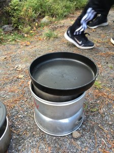 Det var roligt att laga mellanmål på Trangiakök. Vi lagade någon sorts saft/soppa, och vi fick en banan eller äppel och bulle och vattenmelonskiva. Först lärde vi oss hur man bygger ihop en Trangia. Sedan kokade vi vatten på den men innan vi kokade vattnet så hämtade vi det från en vattenautomat. När vi kokat vattnet satt vi pulver i våra muggar och hällde vattnet i muggen och så blandade vi det lite och lämnade det och stå i ungefär 10 min. Sedan så blev det saft/soppa. Erika tyckte att det var för sött och annars också äckligt. Men Rasmus tyckte att det smakade gott och Felix tyckte att den inte smakade nästan någonting.