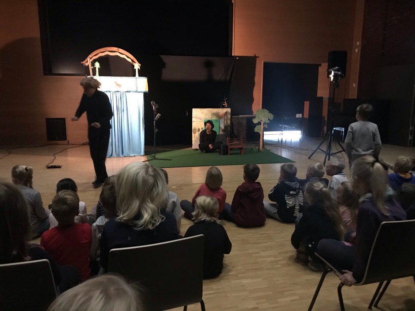 Fredagen 15.11 var åk 1 och åk 2 till Kaarina-talo och såg på Marionettes show som framfördes av dockteatern lilla Åsnan, som är en finsk-italiensk turnerande barnteater från Vasa. Cosimo talade svenska då han kunde.