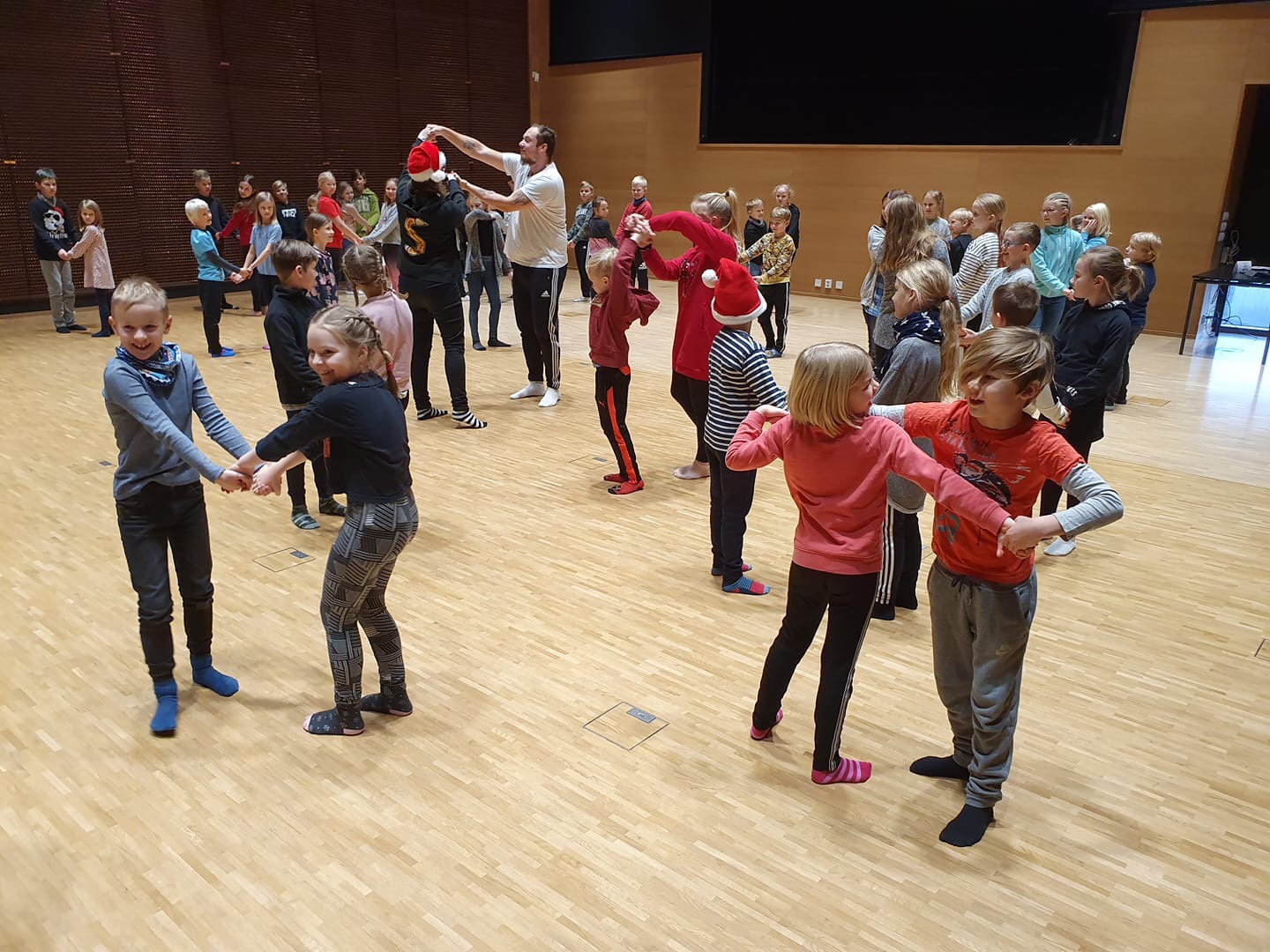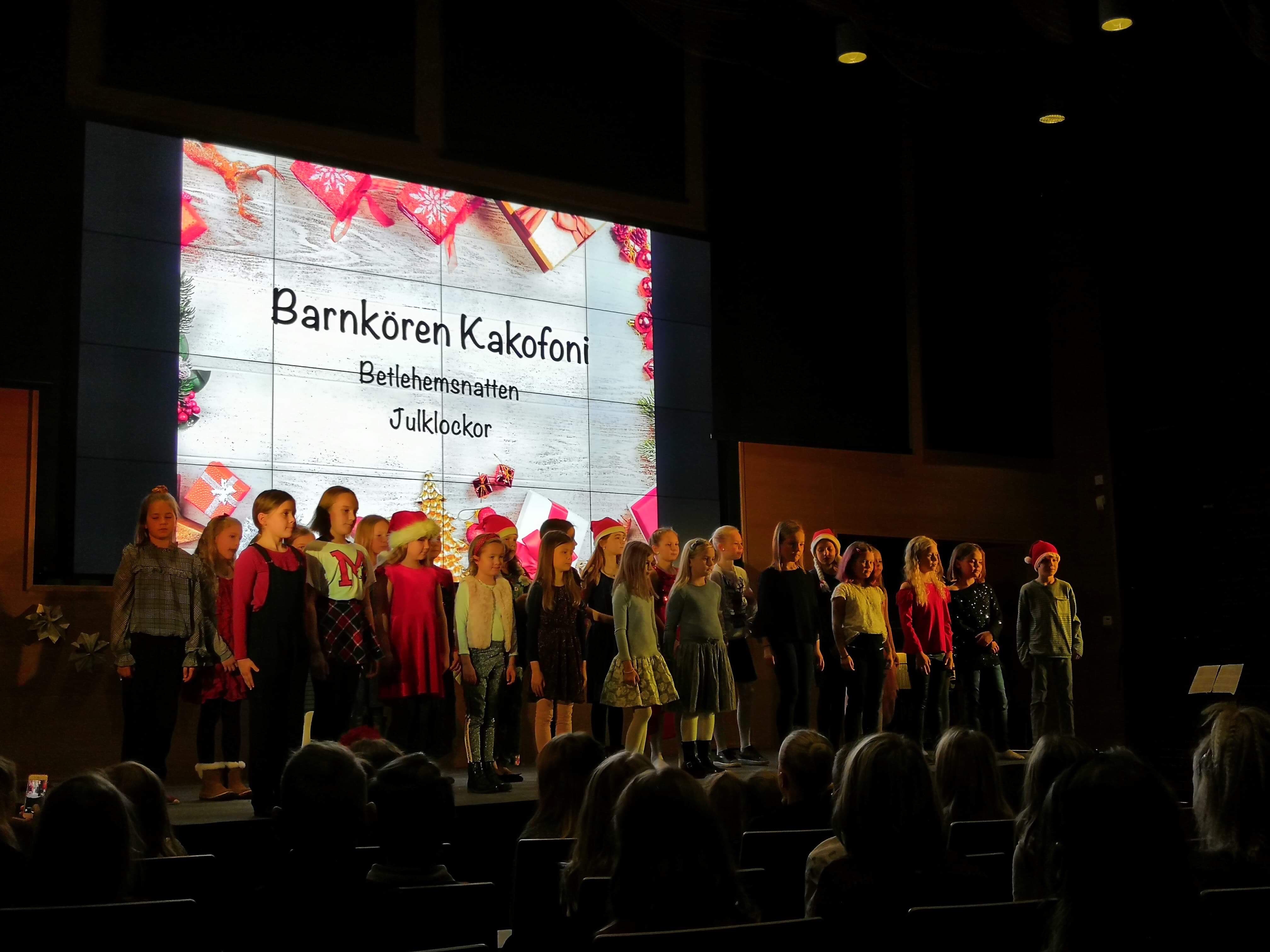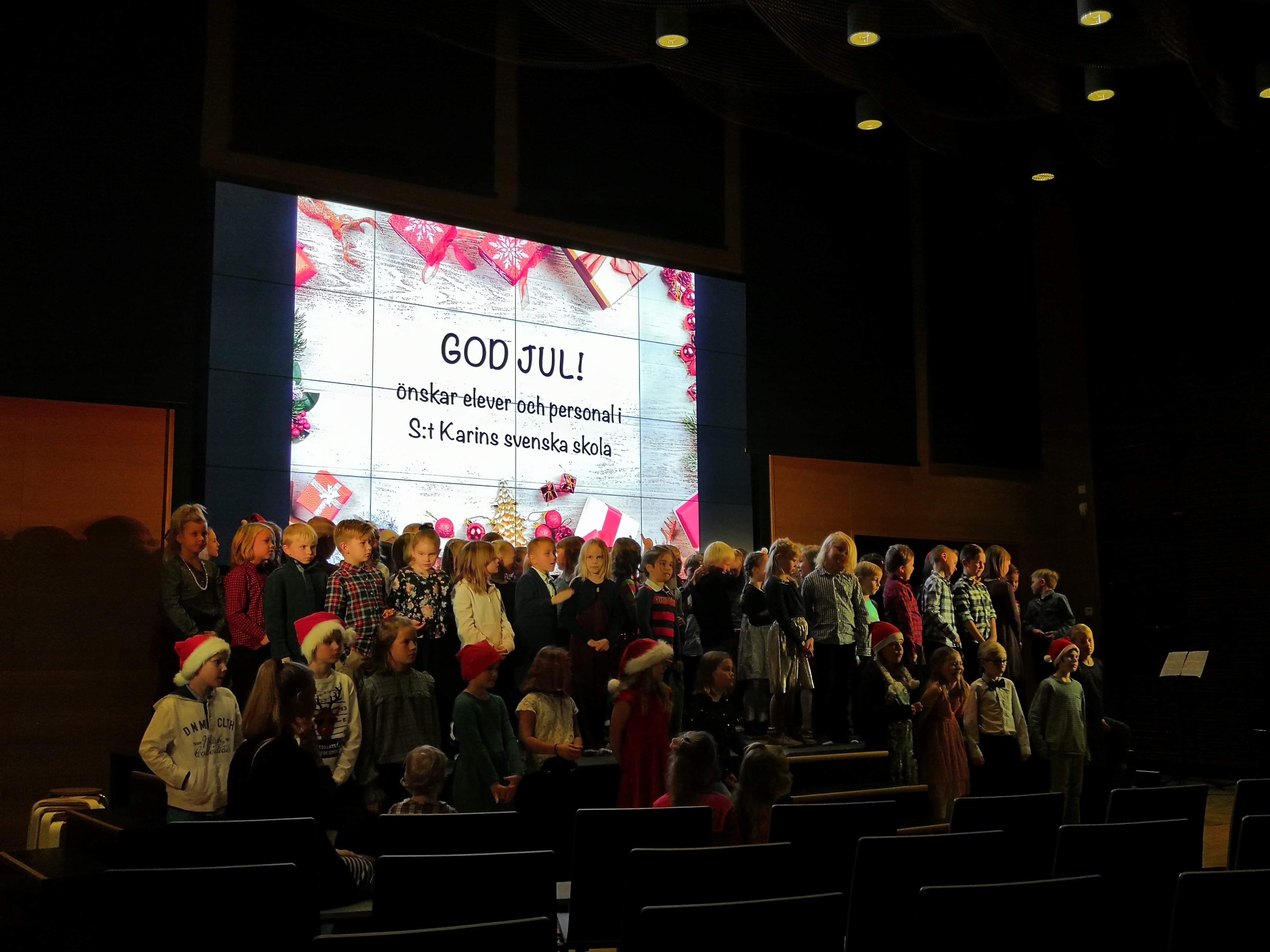 Andra kvällen i rad ordnade S:t Karins svenska skola julfest i Kaarinatalo. Denna kväll var ägnad åt de äldre eleverna, men Kakofoni med elever från åk 1-3 öppnade julfesten med vacker sång.