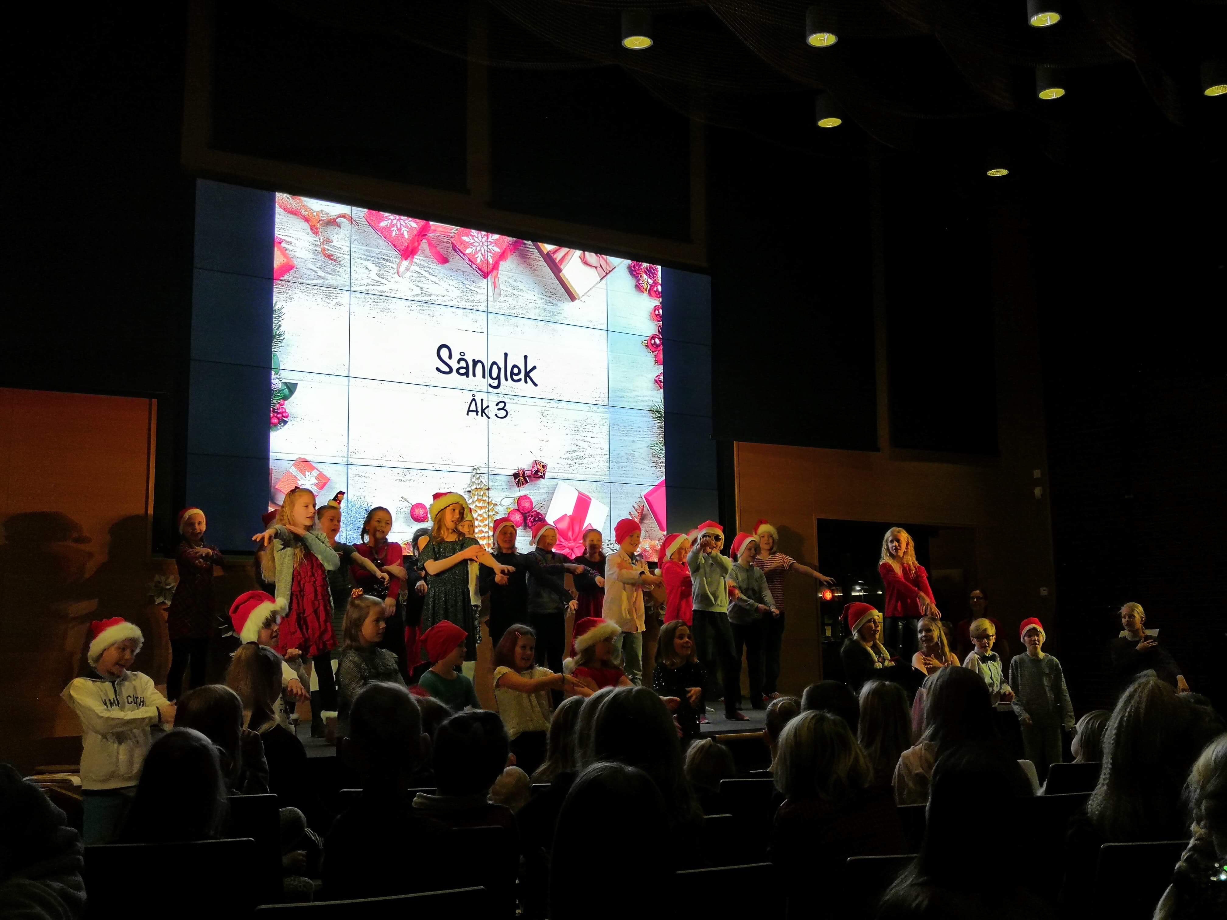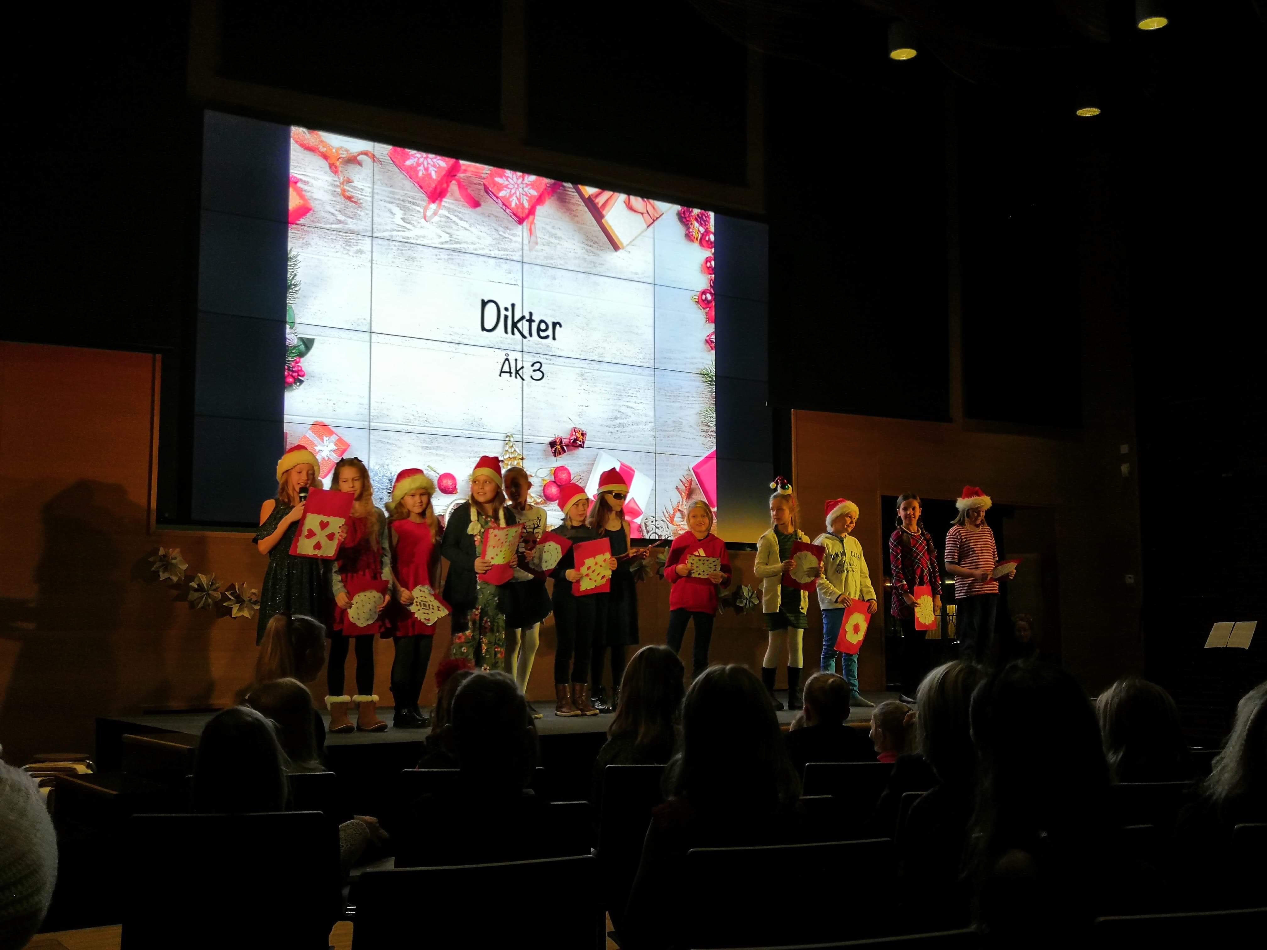Vi fick också den här kvällen ta del av verkligt fint och stämningsfullt program! Årskurs 4 läste julrim och öppnade paket där publiken fick känna på hur det är att vara en skola i rörelse. Årskurs 5 hade ett julspel där de berättade och sjöng om Jesu födelse. Årskurs 6 stod för teatern Vem vill bli miljonär där de hade inslag av reklam, dans och sång. Sist men inte minst, Blåsklubben bjöd självklart på två julsånger!