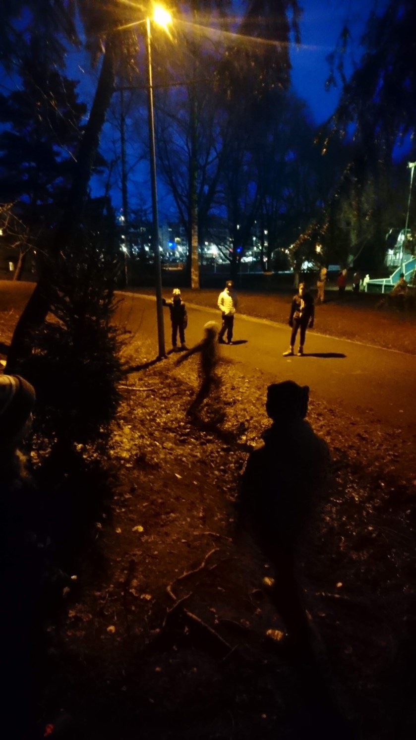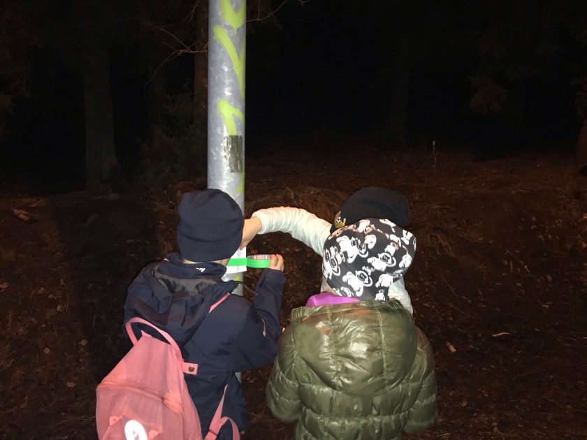 Vi började med uppvärmning inne för att sedan gå ut på orientering.