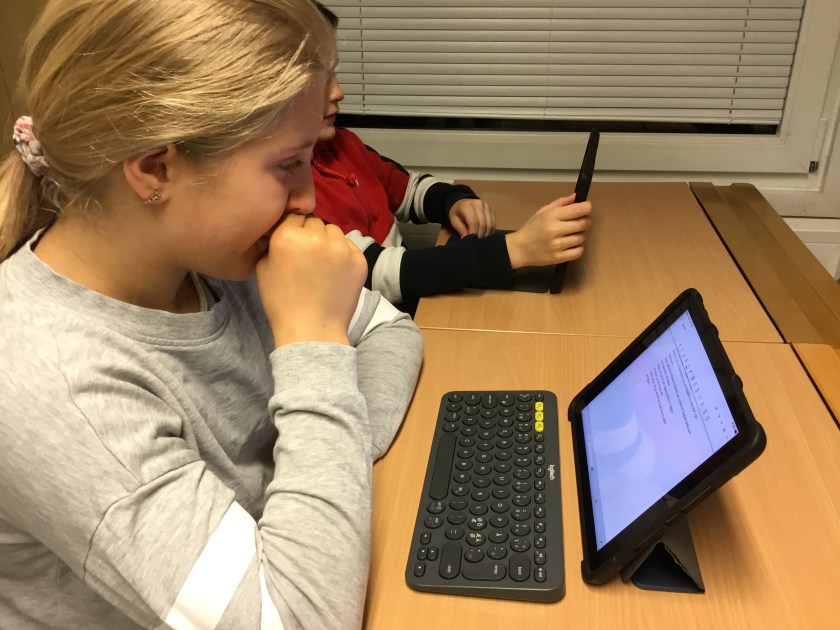 Eleverna hade planerat intressanta lektioner och klarade bra av jobbet som lärare. Kanske lite väl bra med tanke på att Heidi hann få två anteckningar. En för att hon hade lärplattan framme vid fel tillfälle och den andra för att hon fotade till bloggen.