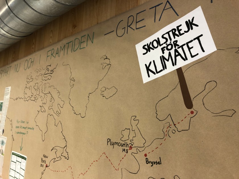 Hela projektet inleddes redan tidigare genom att eleverna fick vara med och planera hur de vill jobba kring klimat och Greta Thunberg. På basen av elevernas önskemål byggde läraren upp en mångvetenskaplig helhet.