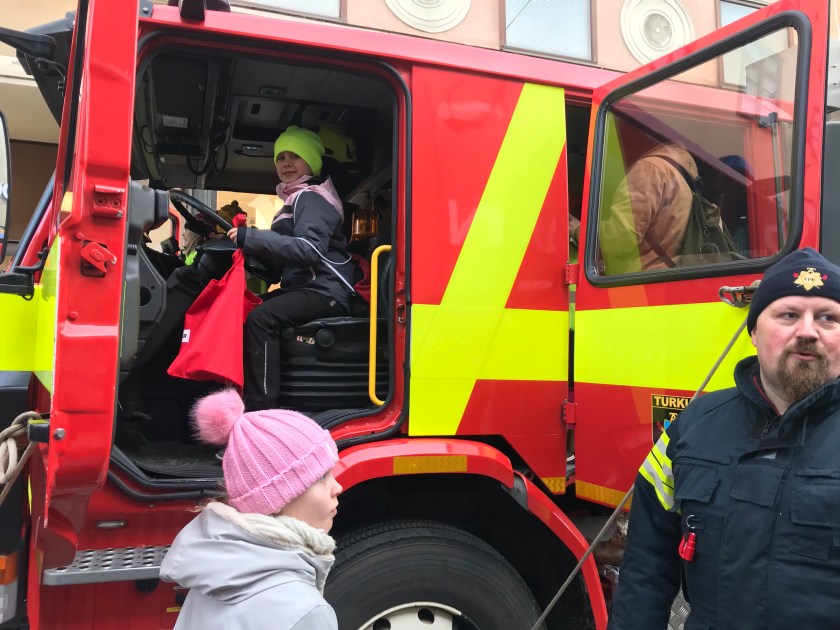 Vi hann också prova om kaffemaskinen vid Åbo Underrättelse är bättre än den nya på jobbet. Det var 112-dag i Åbo och vi passade på att titta in i en brandbil och gå runt och titta lite.