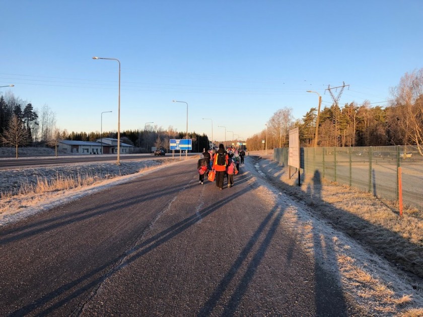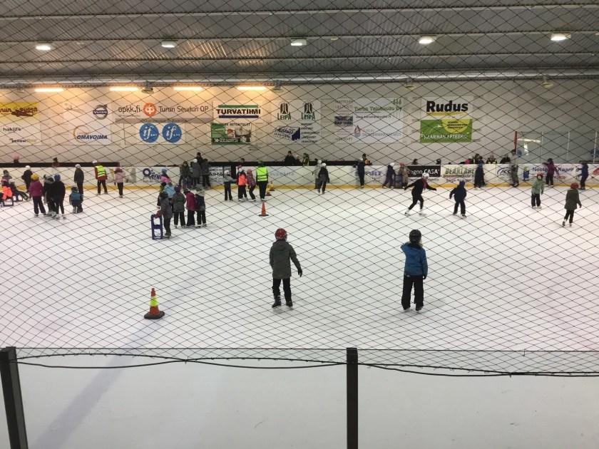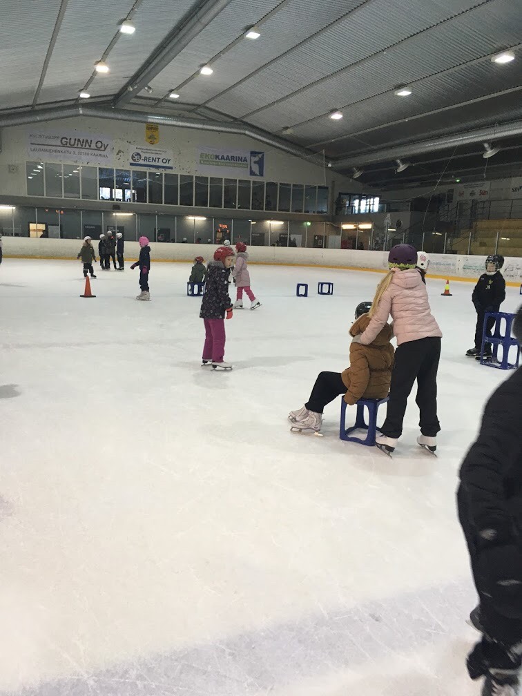 Idag har vi alla firat vändagen tillsammans. I ett strålande väder promenerade klasserna till ishallen för att skrinna. Ishallen fylldes med skratt, prat och musik. Elevministeriets ordförande och kassör drog några lekar för eleverna på isen. Till slut bjöds det på varm saft och pepparkaka.