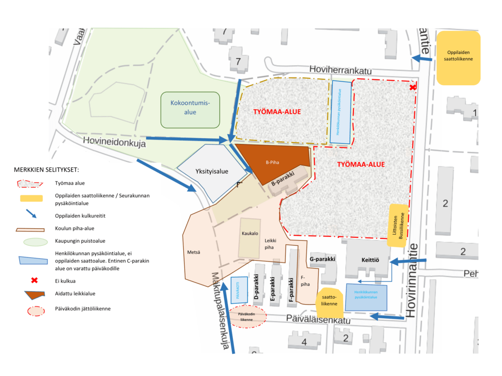 Det nya skolhuset har pålats under sommaren. Också arbetet med den nya dagisbyggnaden har påbörjats och det betyder att skolans baracker och skolgården befinner sig precis bredvid två stora byggprojekt. Det behövs stor försiktighet på väg till och från skolan! Det är absolut förbjudet att gå in på något byggområde trots att portarna står öppna på grund av byggtrafiken ut och in.