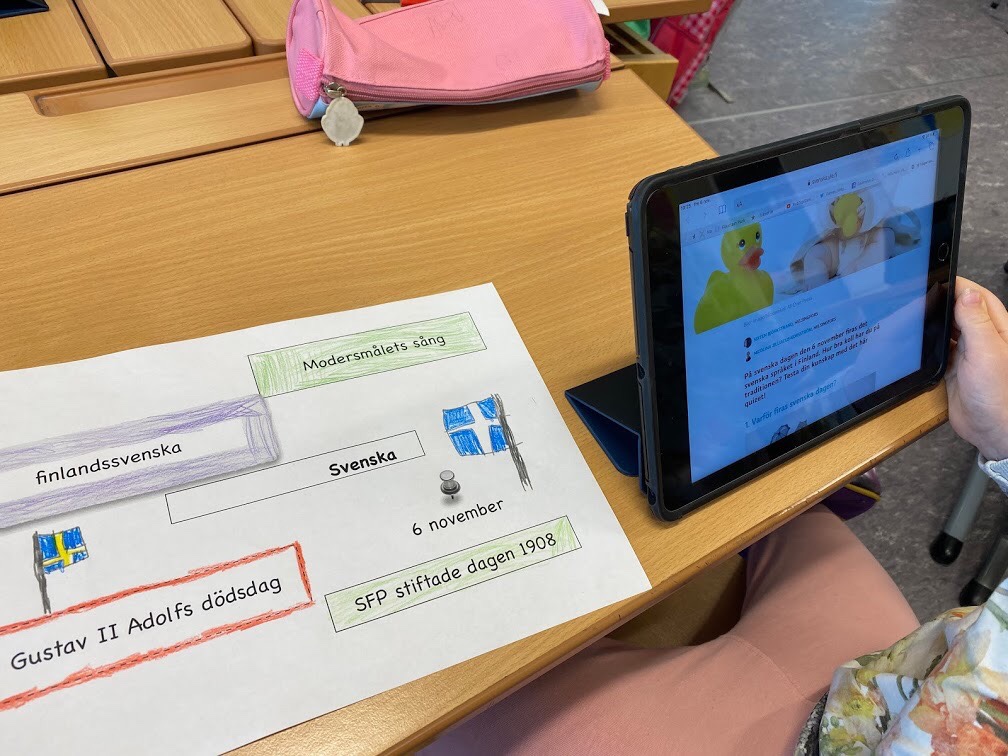 Årskurs 1 har lyssnat på Modersmålets sång och olika finlandssvenska artister. Eleverna har också sett på ett videoklipp om svenska dagen och fått sammanställt fakta om dagen. Vissa elever hann till och med svara på tio frågor om svenska dagen: https://svenska.yle.fi/artikel/2018/11/05/10-fragor-om-svenska-dagen