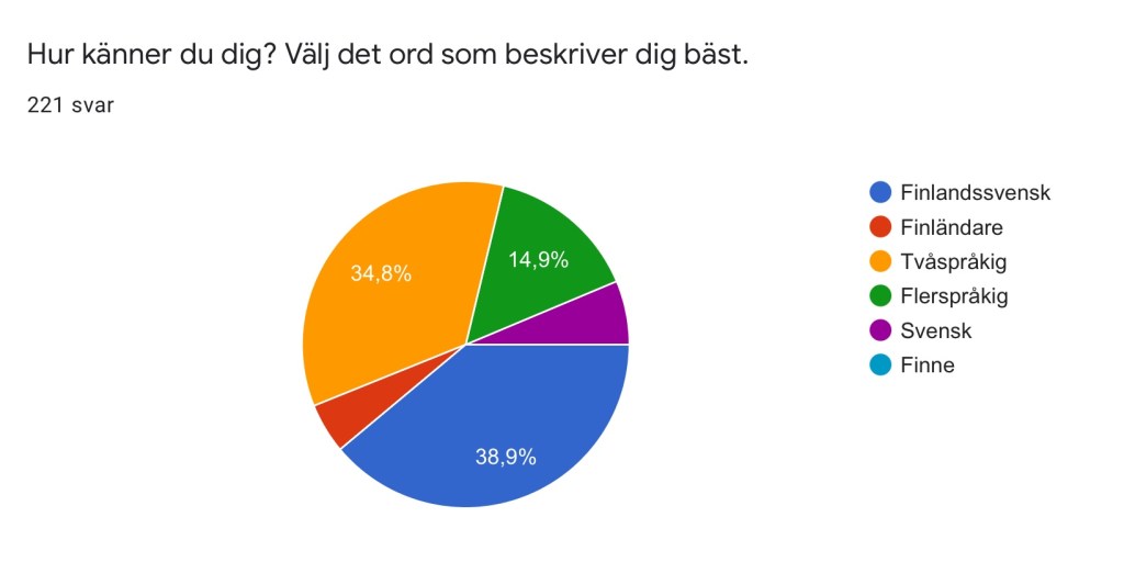 Till sist vill vi presentera resultatet från dagens snabbenkät om den språkliga identiteten bland elever och personal.