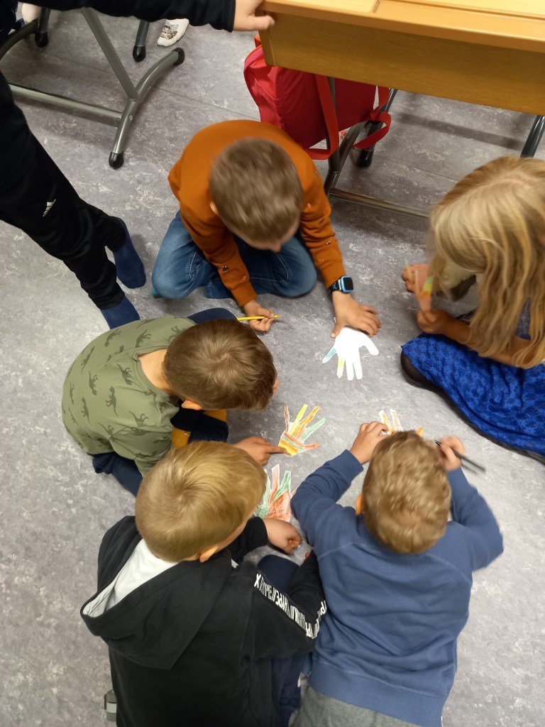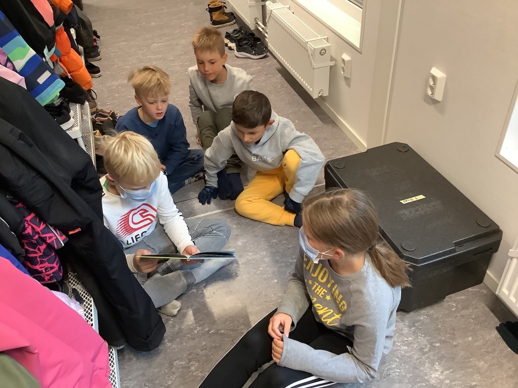 Ettornas och fyrornas vänelevsverksamhet har börjat! Eleverna träffades redan förra veckan för en högläsningsstund tillsammans. Många elever tyckte att det var extra roligt att träffas eftersom eleverna inte på länge har fått träffa varandra över årskursgränserna. Ettornas och fyrornas samarbete började redan då ettorna gick i förskolan.