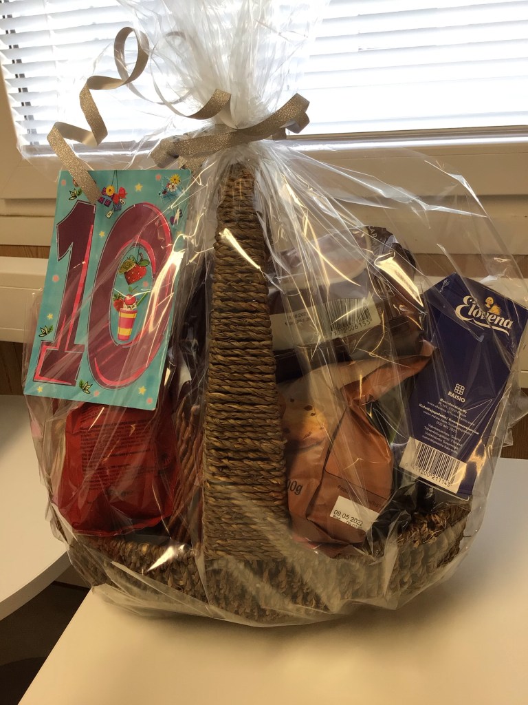 SFP i S:t Karins gratulerar 10-åringenGåva av SFP i S:t KarinsGåva av Hovirinnan koulu