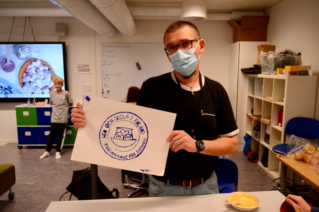 I klasserna pysslade eleverna olika delar av ett STARK-träd som ska pryda fönstret i Kaarinasali nästa vecka.