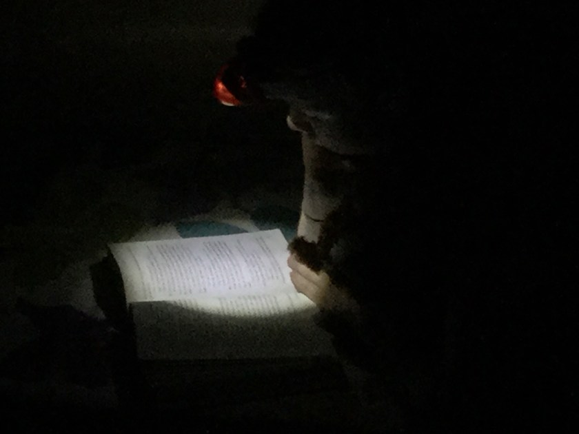 Mörkret har lagt sig över barackbyn. Från utsidan verkar allt bara grått, slaskigt och dött. Inne i värmen tisslas det och tasslas det. Lyssnar man riktigt noggrant hör man prasslet av sidor som vänds. I år är vi 67 elever och föräldrar som läser i pannlampornas sken. Hem och skola står för kaffet men trafiken till kannan bara minskar och minskar ju mer alla fastnar i sina böcker. Skolutrymmena är tillfälliga men läsnatten består.