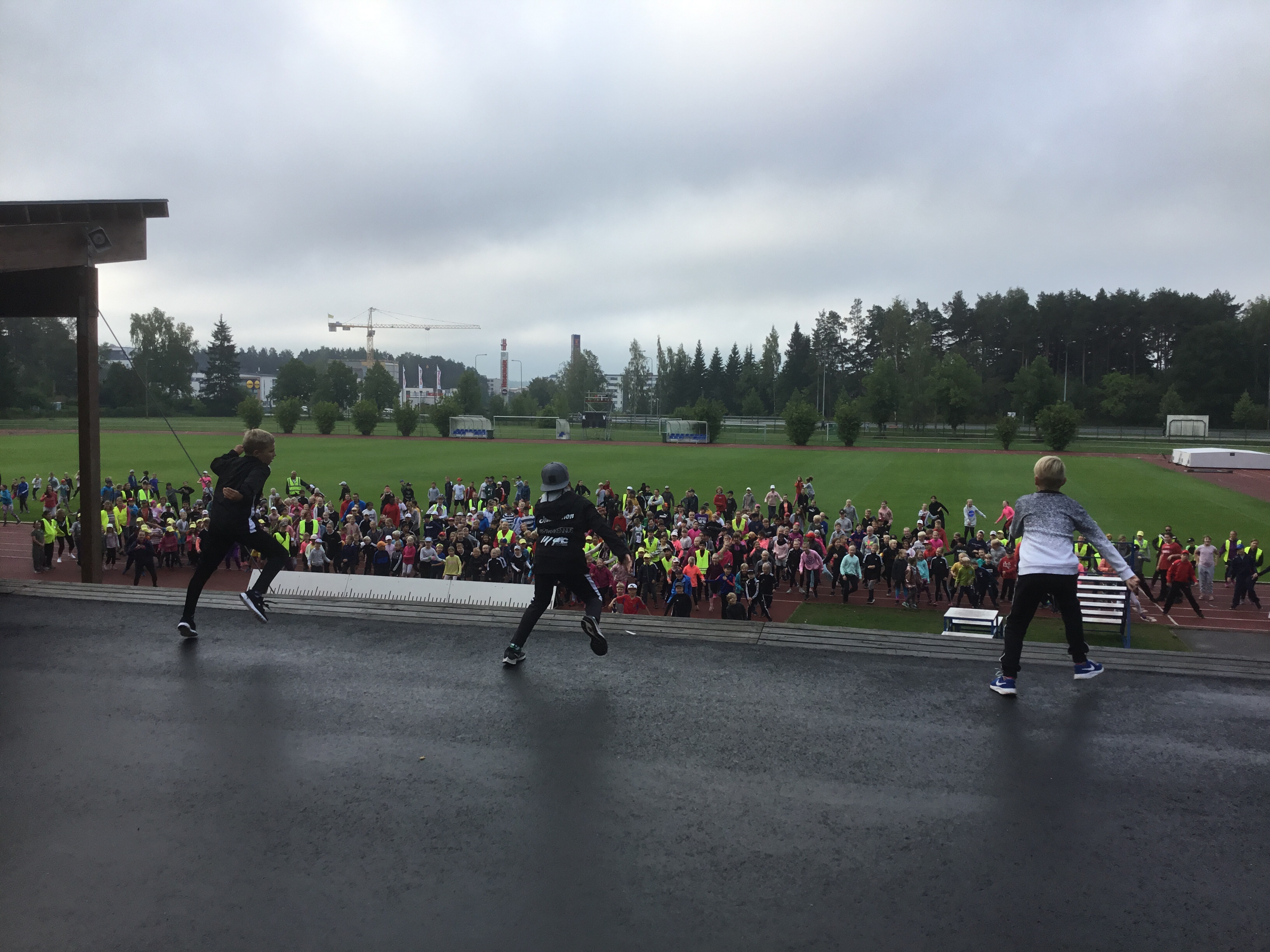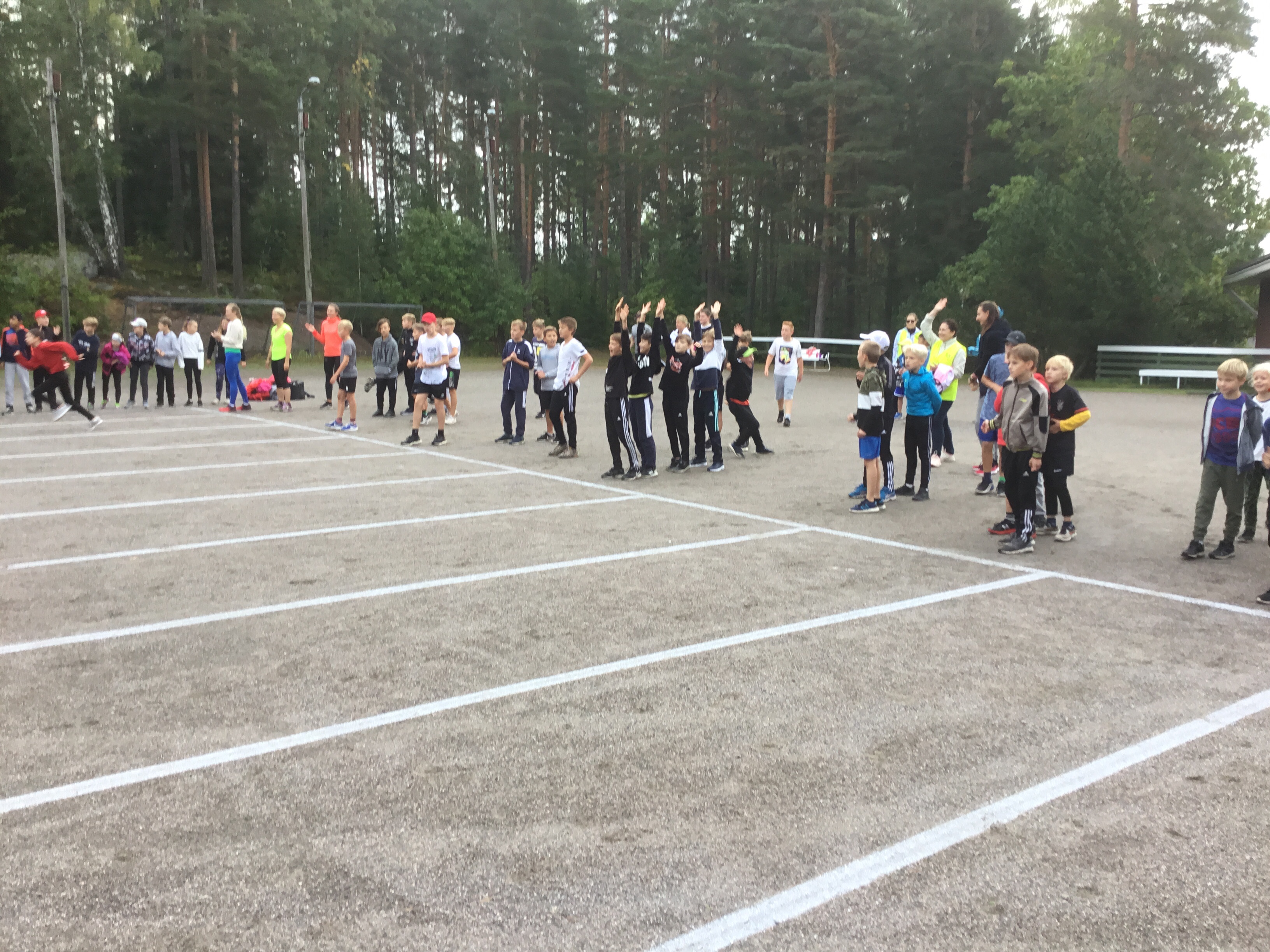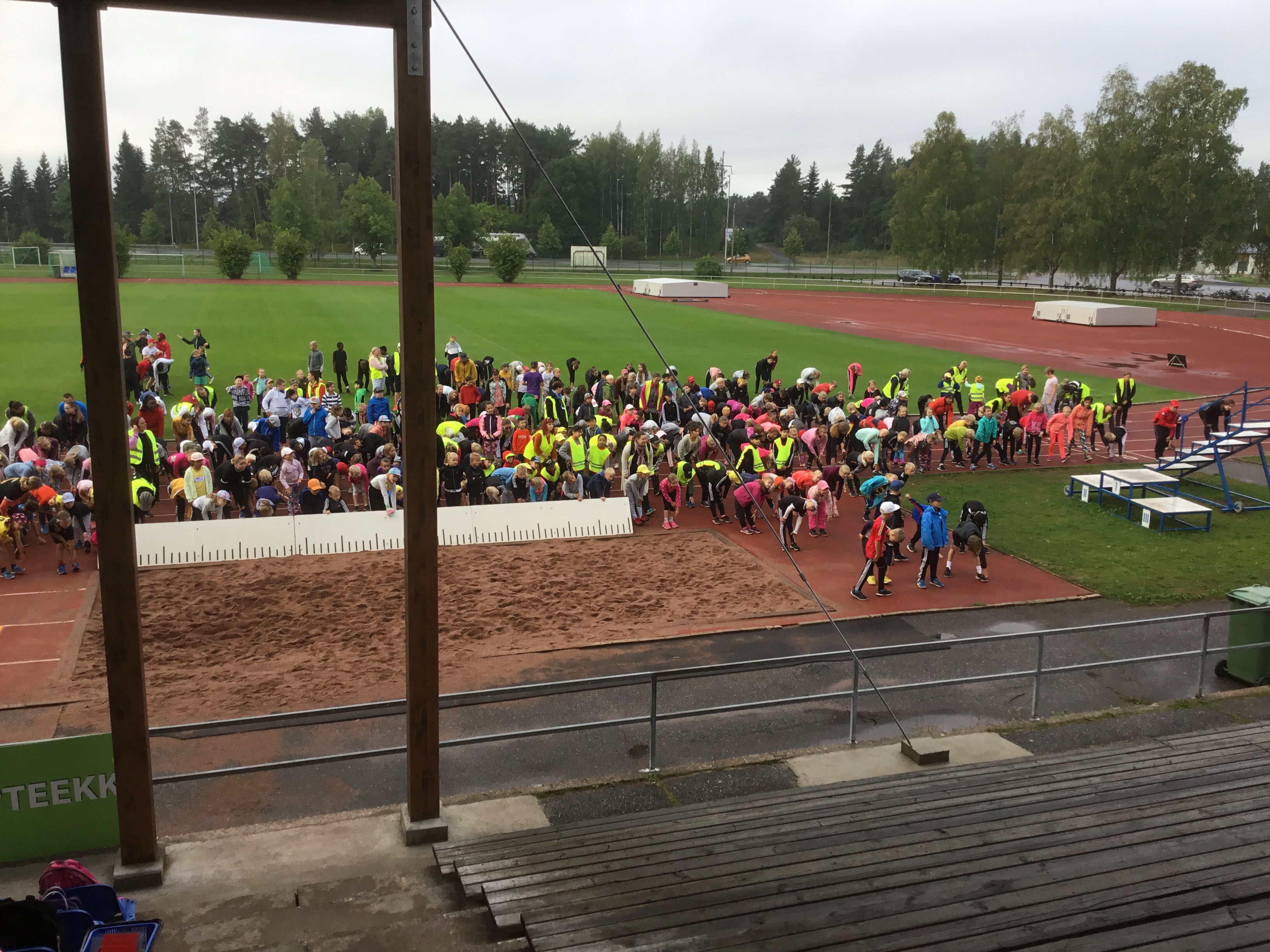 Den traditionella friidrottsdagen tillsammans med Hovirinnan koulu har idag gått av stapeln vid centralidrottsplanen i S:t Karins. André, Oliver och Simeon höll gemensam uppvärming för båda skolorna. Stafetten för åk 3-6+lärarna vanns av Hovirinta åk 4. Övriga grenar var 60 m löpning, höjdhopp, längdhopp, spjutkastning, kulstötning och bollkastning.