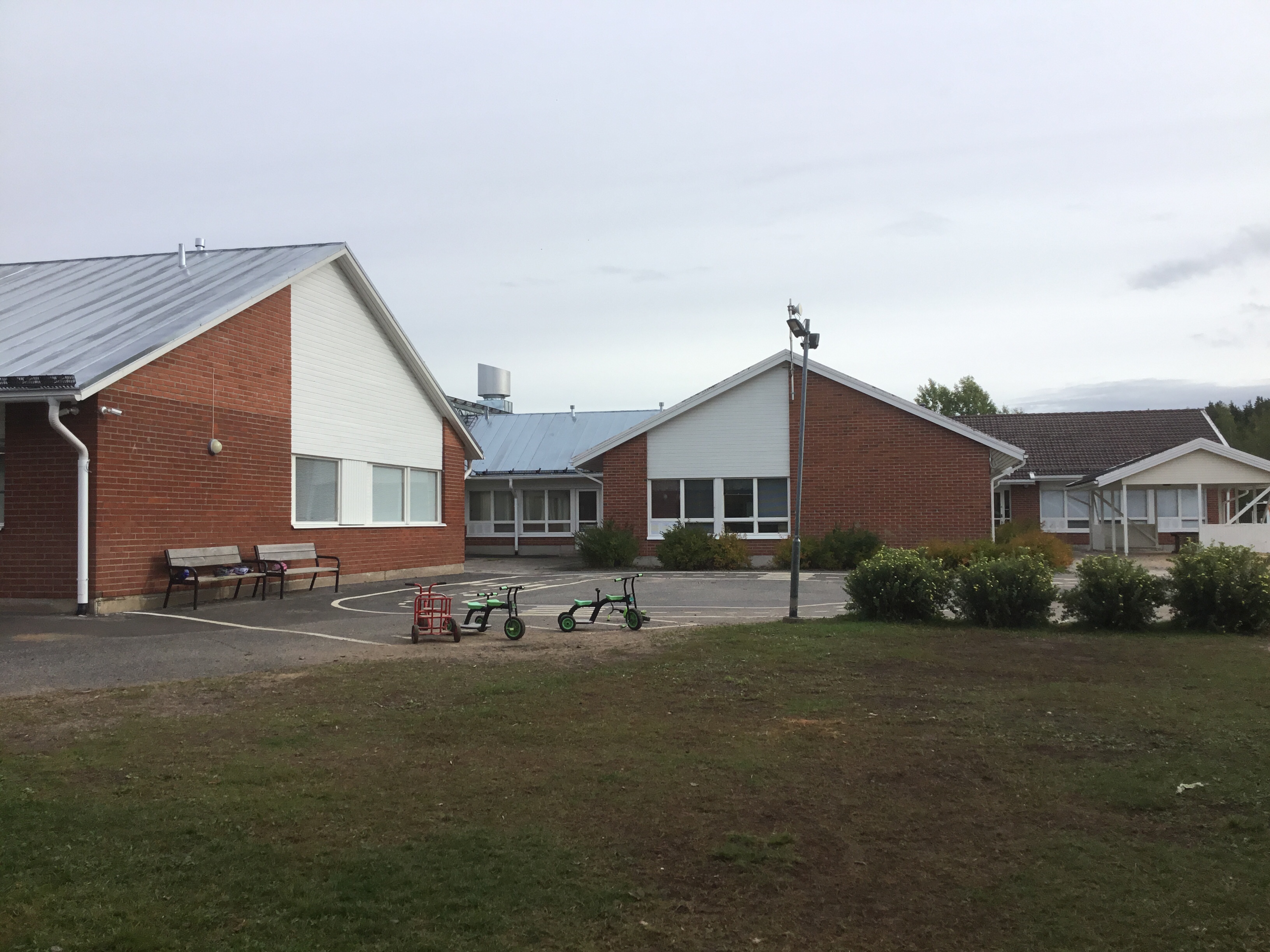 På skolgården är rivningsarbetena av det gamla skolhuset och byggarbeten för den nya G-baracken i full gång. Skolgården har tillfälligt blivit ännu mindre pga rivningsarbetena, matbilen kör till A och B-baracken via Hoviherrankatu, taxibilarna stannar för tillfället i ändan av Päiväläisenkatu och vi vill fortfarande inte ha privatbilar till Päiväläisenkatu på morgonen. 😊
