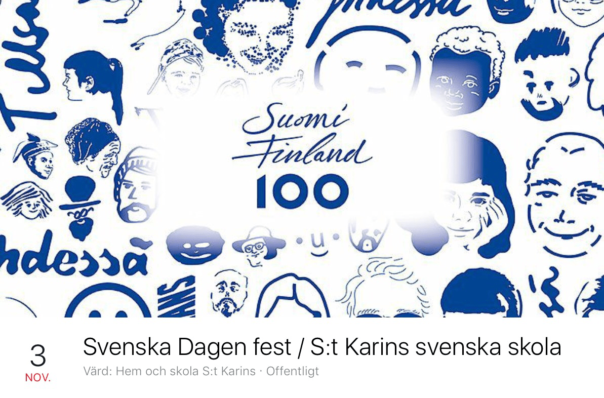 Hem och skola i S:t Karins ordnar traditionell Svenska dagen-fest fredagen den 3.11 med temat Finland 100. Den här gången ordnas festen i S:t Karins kyrka.