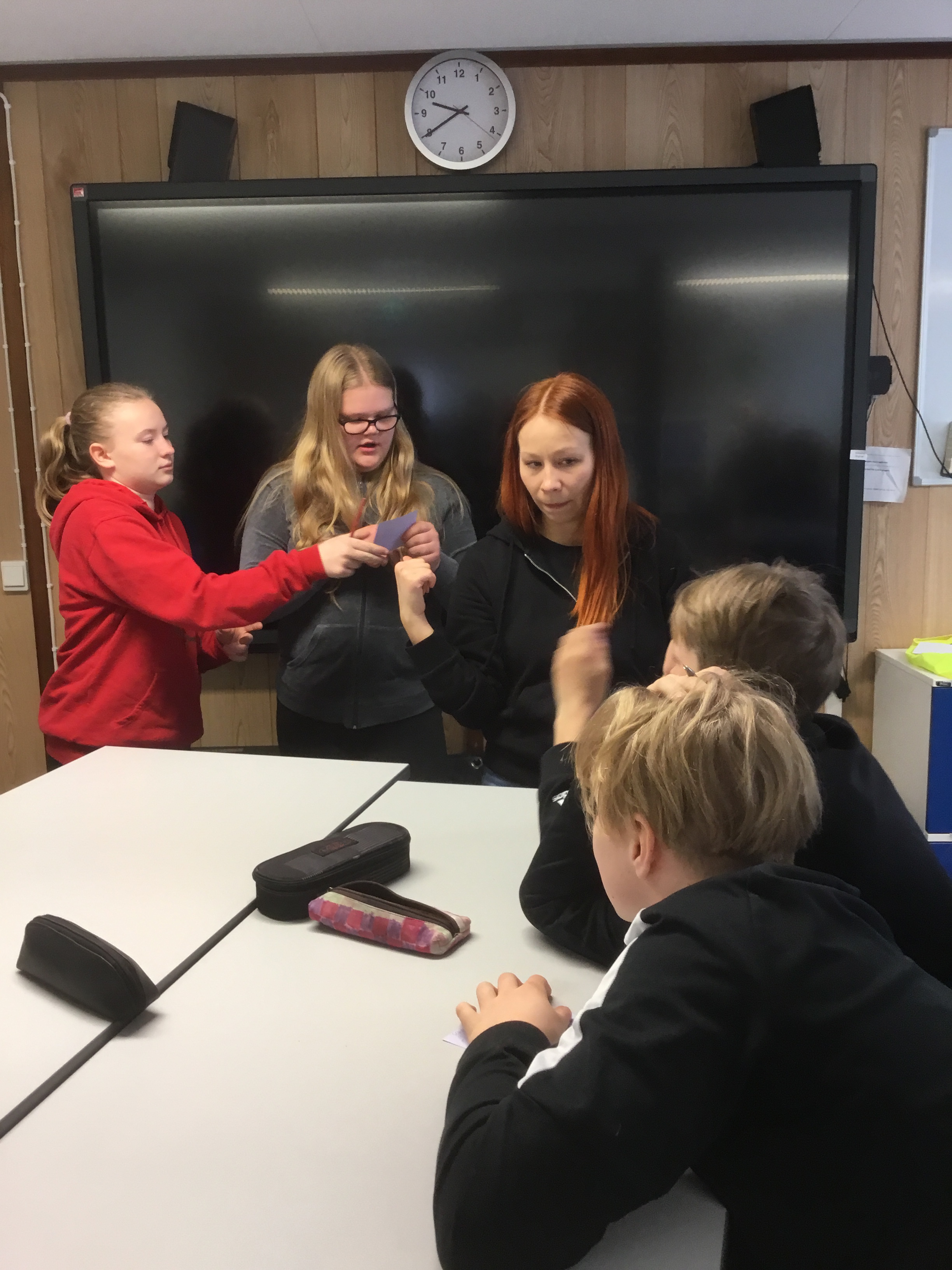 Idag hade åk 5&6 workshopar kring föreställningen med Iiris från Totem-teatern. De funderade över pjäsen, vilka yrken man kunde ha och hur man kunde köpa och sälja med sina egna produkter. Åk 6A tillverkade vindpengar för Vindlandet som var deras egna påhittade land.