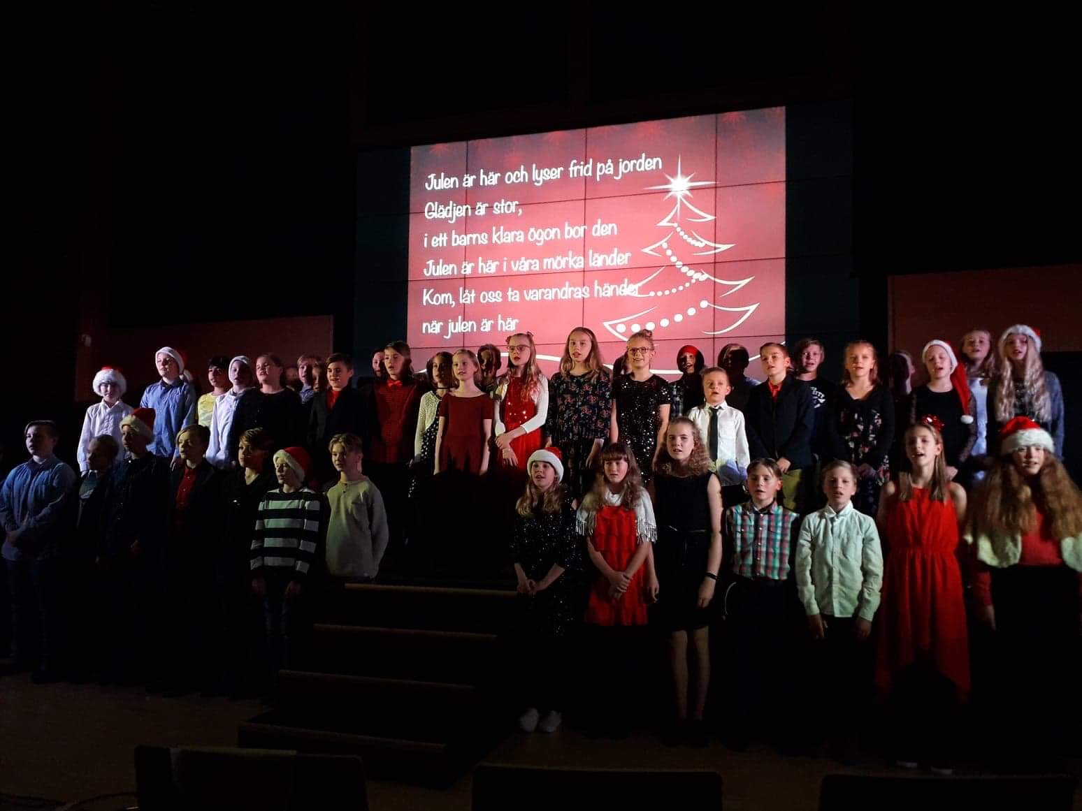Andra kvällen i rad ordnade S:t Karins svenska skola julfest i Kaarinatalo. Denna kväll var ägnad åt de äldre eleverna, men Kakofoni med elever från åk 1-3 öppnade julfesten med vacker sång.