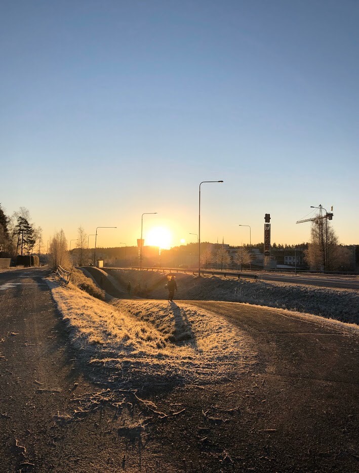 Idag har vi alla firat vändagen tillsammans. I ett strålande väder promenerade klasserna till ishallen för att skrinna. Ishallen fylldes med skratt, prat och musik. Elevministeriets ordförande och kassör drog några lekar för eleverna på isen. Till slut bjöds det på varm saft och pepparkaka.