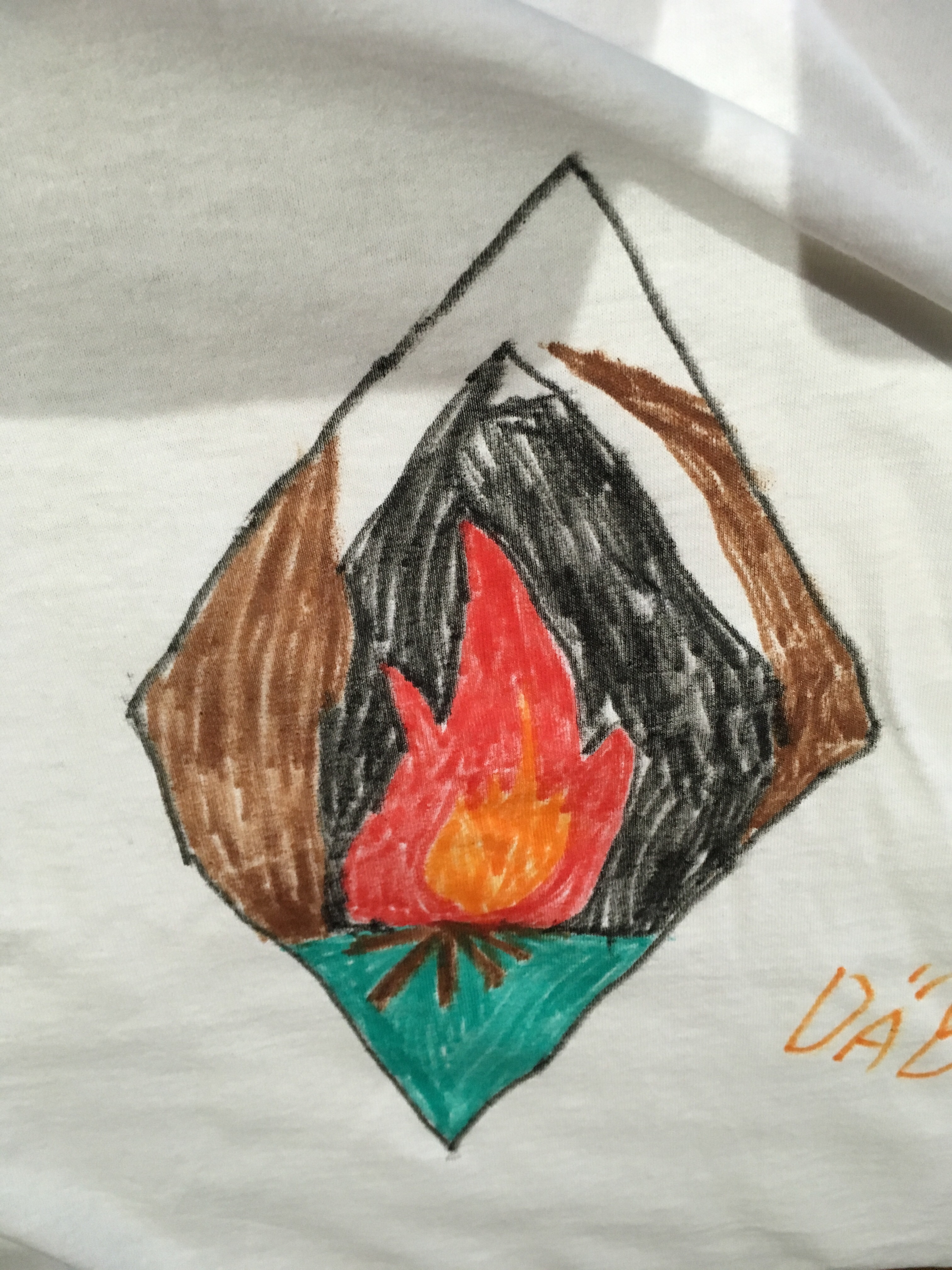 Vi gjorde läger t-skjortor. På t-skjortorna ritade vi en logo som vår klasskompis Stella Sell hade designat. Logon föreställde ett berg, ett träd och en lägereld. Logon såg ut som en svår uppgift att rita, men den var egentligen rolig att rita och inte så svår. Sedan fick man rita och skriva vad man ville på t-skjortorna. När alla var färdiga satt man på sig skjortorna och alla hade på dem resten av lägerskolan.
