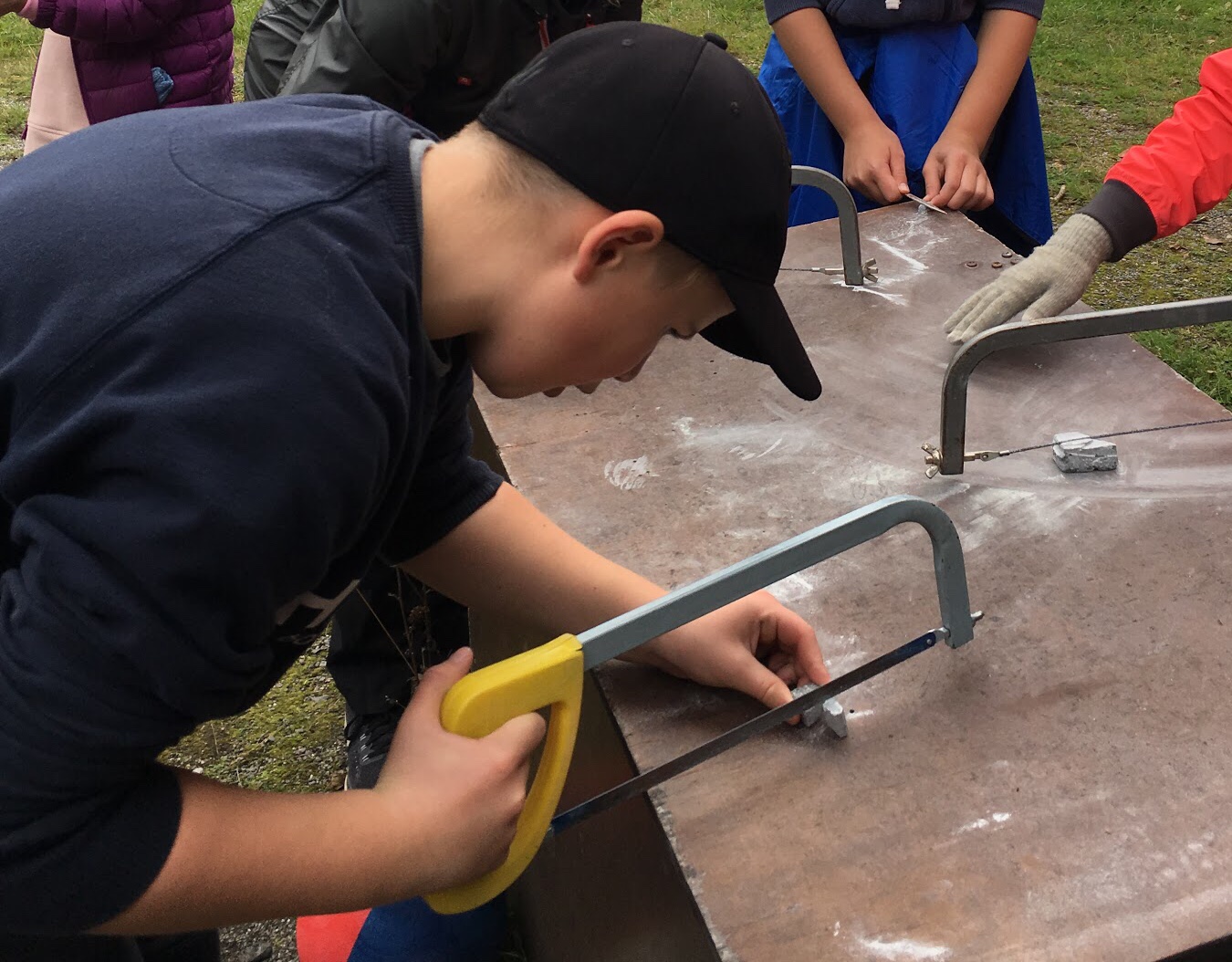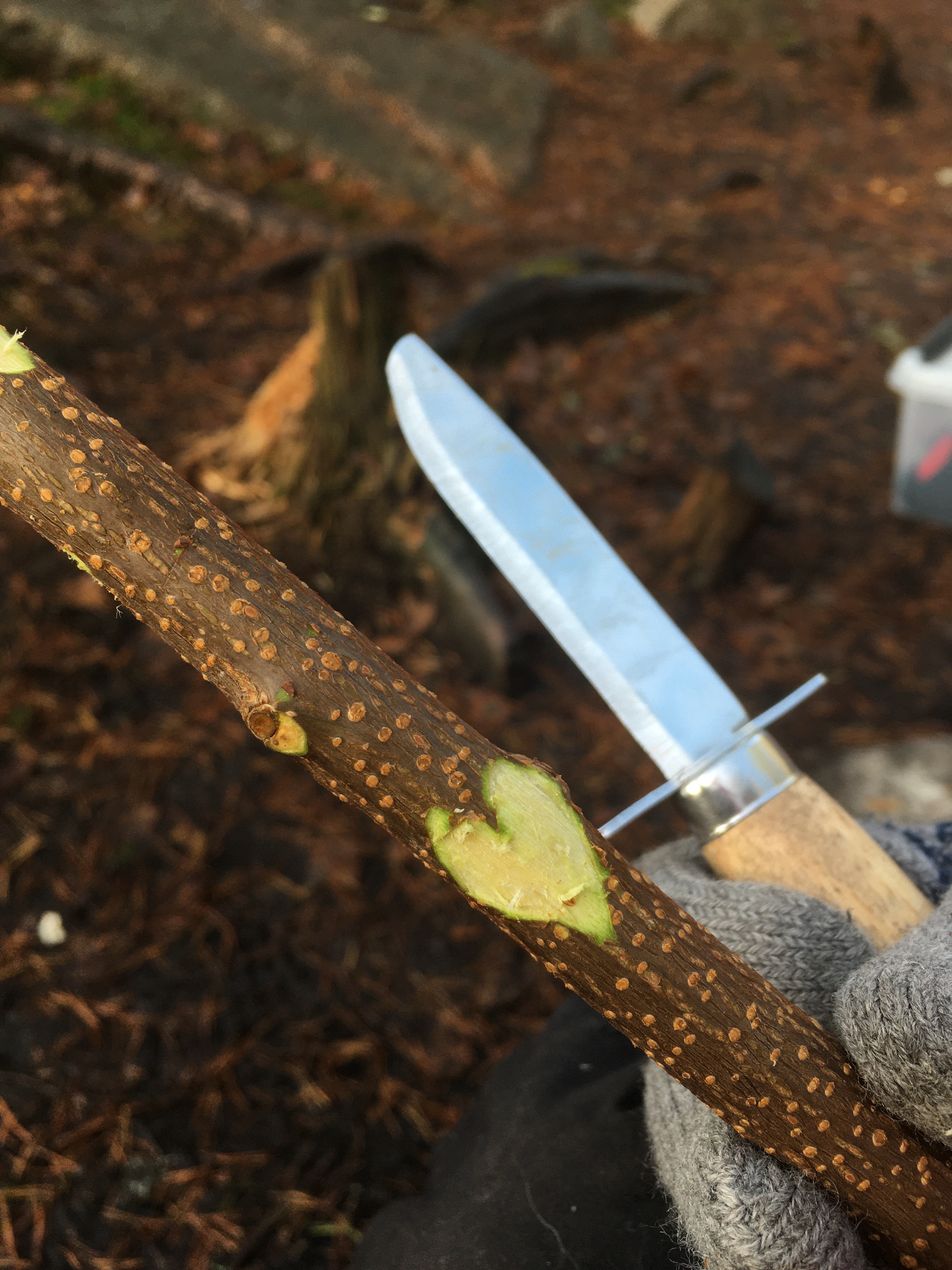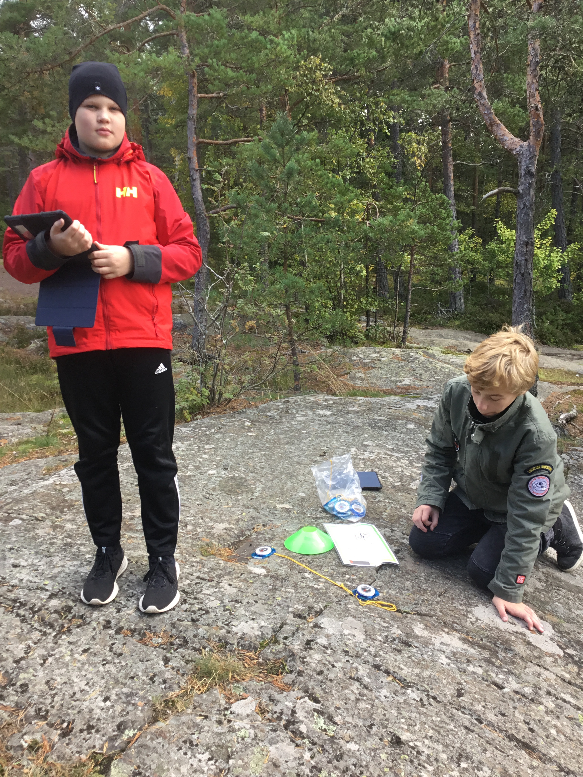 På uteundervisningstimmen hade vi olika stationer och vi gick igenom dem i par eller grupper. Där fanns olika stationer, till exempel att gissa bajset, knopar, att gissa vilket ljus slocknar sist och att gissa trädet med hjälp av en kvist.