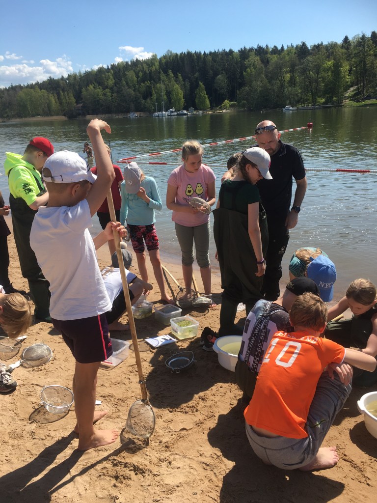 Åk 5 fick avnjuta dagen i soligt väder vid Hovirintastranden tillsammans med Jonas Heikkilä från Åbolands Naturskola.