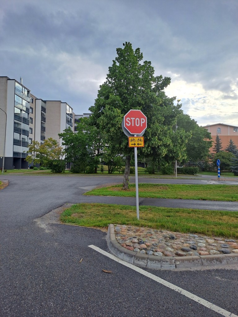 Tryggheten och säkerheten är viktig för oss alla, så även på parkeringsplatsen utanför skolan. Kom ihåg att köra sakta och framförallt: STANNA vid STOP-märket innan du kör ut på Hovirinnantie. Det händer ofta att bilister kör ut från parkeringen utan att stanna. Alla borde kunna trafikreglerna. Tack på förhand!