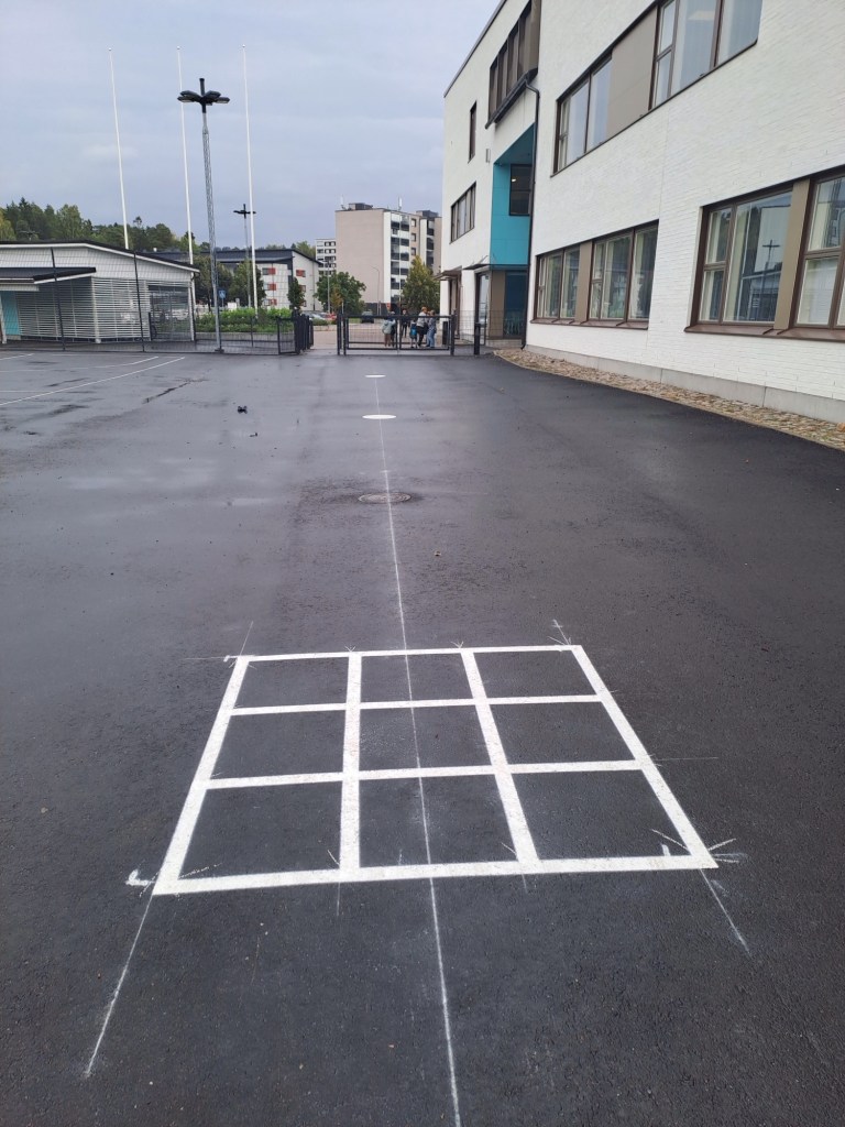 Eleverna i bpda skolorna har fått ge idéer till asfaltmålningar på skolgården. Nu har vi spelplaner och ställen för lek och spring på båda sidorna om skolhuset.