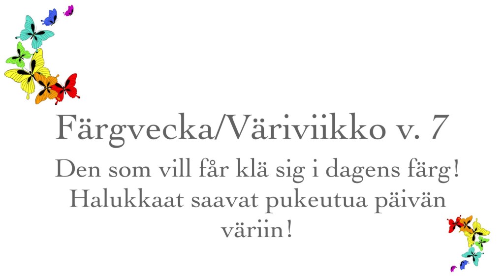 Vecka 7 har elevrådet planerat in en färgvecka och vecka 8 är det sportlov.