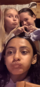 Vi hade roligt i vårt rum. Vårt rum var ett av de större rummen. Alla ville hela tiden komma till vårt rum och hänga. Några hittade till och med egna platser, till exempel Aarre uppe på ett skåp. Emellanåt lekte vi sanning och konsekvens, då kunde det bli dramatiskt. Maten var jättegod. Medan vi väntade på att alla ätit, stod vi på händerna i tamburen.